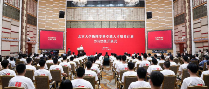 北京大學(xué)物理學(xué)科卓越人才培養(yǎng)計(jì)劃于2021年12月啟動(dòng),通過報(bào)名、初審、考查測試、“物理卓越營”為期四個(gè)月的遴選,首批擇優(yōu)錄取61人。儀式正式開始前,北京大學(xué)“物理卓越計(jì)劃”2022級(jí)新生共同演唱《我和我的祖國》,用歌聲表達(dá)對(duì)祖國的熱愛與祝福。