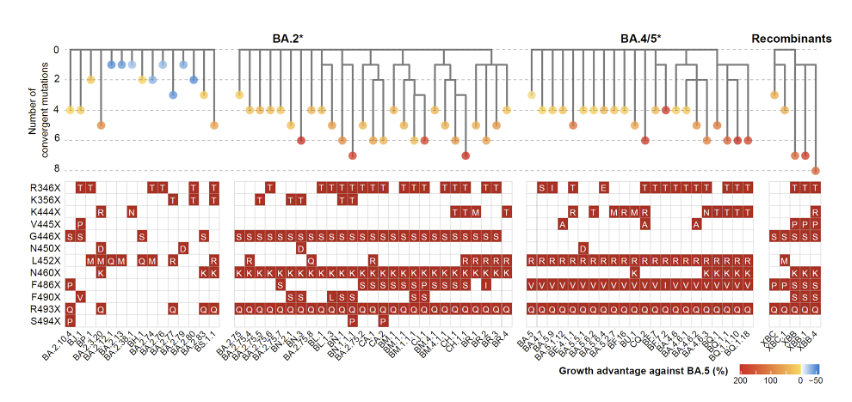 奧密克戎的變異株仍在快速涌現(xiàn),不同支系紛繁復(fù)雜。但曹云龍與團(tuán)隊(duì)成員持續(xù)追蹤觀察發(fā)現(xiàn),病毒的突變正在呈趨同趨勢。