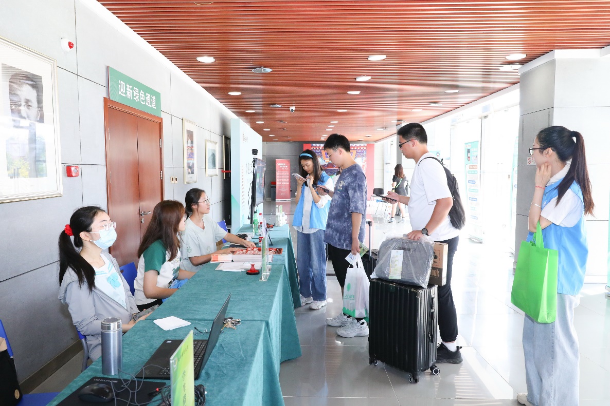 在校內每個主要路口的迎新志愿者服務站,學生志愿者們耐心地向新生提供引導、指示和答疑等服務;在邱德拔體育館北廣場的行李寄存處,學生志愿者熱心為學弟學妹們搬運行李;在邱德拔體育館內的各職能部門服務站,更是提供全方位的報到服務……北大將是每個新生未來四年的新家,迎新的各項服務保障工作,讓他們體會到回家一樣的感覺,對未來能夠安心學習心底有了保障。