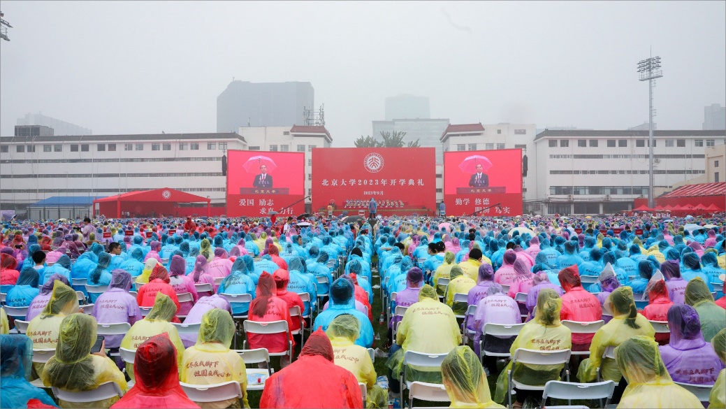 白露時(shí)節(jié),細(xì)雨瀟瀟。初秋的燕園處處散發(fā)勃勃生機(jī),也充溢著青春氣息。9月8日上午,北京大學(xué)2023年開學(xué)典禮在五四體育場舉行。11,000余名2023級新生齊聚于此,滿懷憧憬與希望,從此開啟他們?nèi)松饓舻膷湫潞匠獭?/p>