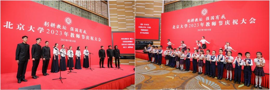 暖場(chǎng)演出、開場(chǎng)視頻讓現(xiàn)場(chǎng)洋溢著節(jié)日的喜慶和溫馨。北大同學(xué)們、附屬幼兒園的孩子們用音樂、歌聲和舞蹈,向老師們表達(dá)深深的感激之情。開場(chǎng)視頻《師者如光》展現(xiàn)了北大教師的育人初心,諄諄話語(yǔ)道出老師們對(duì)學(xué)生成長(zhǎng)的期冀,抒發(fā)對(duì)培養(yǎng)國(guó)家棟梁之才的肺腑之言。