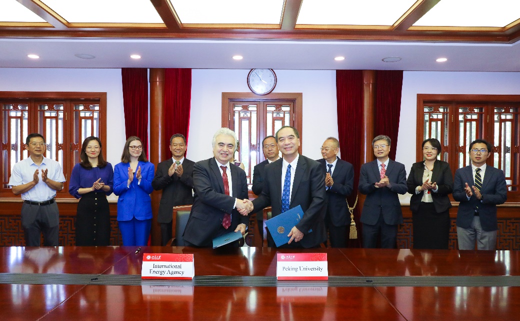 國(guó)際能源署署長(zhǎng)法提赫·比羅爾訪問(wèn)北京大學(xué),北京大學(xué)校長(zhǎng)龔旗煌與比羅爾代表雙方共同簽署諒解備忘錄