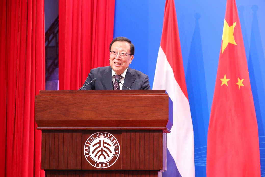 荷蘭駐華大使昊使博(Andre Haspels),中國駐荷蘭王國特命全權大使談踐,北京大學黨委書記、校務委員會主任郝平,校長龔旗煌等校領導,與相關院系老師、近400名學生代表共同參加在辦公樓禮堂舉行的交流會。交流會由郝平主持。