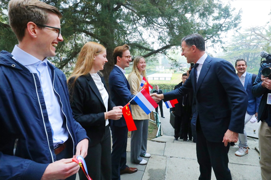 交流會后,呂特首相與在京荷蘭籍留學生及荷蘭語專業(yè)學生進行座談。呂特首相耐心聽取了學生代表的見解和問題,鼓勵同學們繼續(xù)深化對荷蘭和中國文化的了解,同時也強調(diào)了跨文化交流和國際合作的重要性,勉勵同學們努力成為促進荷中友好關系發(fā)展的橋梁和使者。