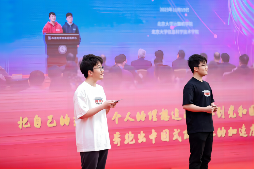 2014年的5月4日,習(xí)近平總書記來到北京大學(xué)考察,以“勤學(xué)、修德、明辨、篤實”八字激勵青年學(xué)子。2018年5月,習(xí)近平總書記再次來到北京大學(xué),強調(diào)“廣大青年要成為實現(xiàn)中華民族偉大復(fù)興的生力軍,肩負(fù)起國家和民族的希望。”多年來,北大青年銘記總書記殷切囑托,斗志昂揚,勇挑重?fù)?dān),在民族復(fù)興的前沿譜寫華章,在祖國發(fā)展的浪尖揚帆起航。北京大學(xué)“五·四”獎?wù)芦@得者、信息科學(xué)技術(shù)學(xué)院2020級本科生耿逸然,北京大學(xué)年度人物、信息科學(xué)技術(shù)學(xué)院2020級本科生耿浩然作為北大青年代表發(fā)言,分享他們從習(xí)近平總書記五四青年節(jié)最新寄語和系列重要講話精神汲取營養(yǎng)、奮力成長的青春故事。這對來自圖靈班的雙胞胎兄弟,懷揣著對機器人研究的熱愛和突破國內(nèi)智能機器人研究瓶頸、追趕世界一流技術(shù)的夢想,將青春與汗水投入到科研中去,在重重困難中不懈努力,為祖國的機器人事業(yè)添磚加瓦,真正找到了生命的樂趣與價值。