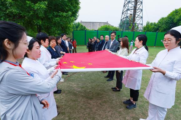 上午8時整,旭日東升,晨光絢麗,升旗儀式正式開始。在北京大學(xué)主會場,54名師生代表手手傳遞五星紅旗,他們中既有為學(xué)校辛勤耕耘一生的離退休教師,又有來自北大附中附小的祖國未來之星;既有院系的黨委書記、院長代表,又有育人一線的思政輔導(dǎo)員和厚道仁心的北大第三醫(yī)院的醫(yī)生護士;既有勇攀科技高峰的老中青科學(xué)家,又有在科研、志愿服務(wù)等各領(lǐng)域閃閃發(fā)光的北大優(yōu)秀學(xué)生代表。五四精神的炬火、矢志報國的血脈,在一代又一代北大人的堅守耕耘中傳承與弘揚。當(dāng)國旗護衛(wèi)隊的六位標(biāo)兵接過五星紅旗并護旗至旗桿后,雄壯莊嚴(yán)的國歌奏響,北大校園、浙江嘉興、遼寧撫順、河北樂亭、云南彌渡、內(nèi)蒙古杭錦后旗、新疆烏魯木齊、青海大通、西藏拉薩、河北雄安的十地師生全體起立同唱國歌,共同注視著鮮艷的五星紅旗向著朝陽升起,感受著激蕩人心的愛國之情,凝聚起團結(jié)奮斗的磅礴力量。