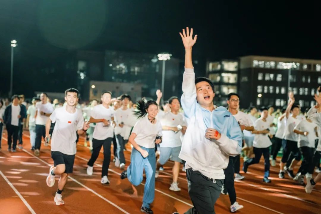 活動最后,現(xiàn)場師生于體育場中央集合,圍繞著五星紅旗與“2024”圖案合唱《燕園情》,高高舉起的閃光燈匯成一片璀璨的海洋。歌聲承載起一代代北大人的家國情懷與使命擔(dān)當(dāng)。高擎國旗,向陽生長,同學(xué)們心懷遠(yuǎn)大理想,勇攀高峰;扎根大地,向前奮進(jìn),北大青年錨定正確方向,知行合一。在“強(qiáng)國有我,青春有為”的口號聲中,北京大學(xué)2024年“開學(xué)第一跑”活動圓滿結(jié)束,現(xiàn)場師生心潮澎湃、豪情滿懷。