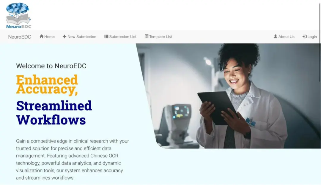 這三種設(shè)備收集的海量數(shù)據(jù)都會(huì)匯集到團(tuán)隊(duì)成員自主搭建的NeuroEDC軟件平臺(tái)上。這個(gè)平臺(tái)不僅能不斷用優(yōu)化的算法反映眼顱壓力穩(wěn)態(tài),還能讓醫(yī)患雙方實(shí)時(shí)監(jiān)控眼顱壓力數(shù)據(jù)。團(tuán)隊(duì)還在NeuroEDC平臺(tái)上植入了醫(yī)療文本中英文自動(dòng)識(shí)別OCR功能,可以幫助患者與研究人員輕松記錄及數(shù)字化處理各種醫(yī)療文本。