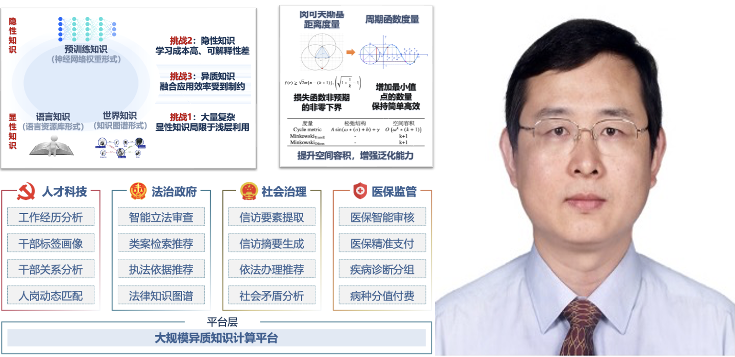 開放復(fù)雜環(huán)境下,認(rèn)知智能應(yīng)用在可解釋性、泛化性、魯棒性、開發(fā)效率上面臨重大挑戰(zhàn),知識計(jì)算是實(shí)現(xiàn)認(rèn)知智能突破的核心技術(shù)。語言知識、世界知識、預(yù)訓(xùn)練知識作為3類大規(guī)模核心知識,分別以語言資源庫、知識圖譜、神經(jīng)網(wǎng)絡(luò)權(quán)重的形式存在,呈現(xiàn)出異質(zhì)異構(gòu)、分散、多模態(tài)、不完備等特點(diǎn)。項(xiàng)目組自2016年起開展深入研究,提出了基于漢語語素的語義基元范型,設(shè)計(jì)了統(tǒng)一知識圖譜表示學(xué)習(xí)框架,給出了跨模態(tài)知識表示空間優(yōu)化機(jī)制及長序列特征約減方法,實(shí)現(xiàn)了大規(guī)模異質(zhì)知識計(jì)算平臺,支持語言知識、世界知識、預(yù)訓(xùn)練知識自適應(yīng)動態(tài)融合。項(xiàng)目成果在多個(gè)領(lǐng)域開展了大規(guī)模應(yīng)用,近3年直接經(jīng)濟(jì)效益超過10億元。其中,組織人事、法治、信訪等領(lǐng)域均為國內(nèi)市場第一;在醫(yī)保監(jiān)管領(lǐng)域,配合國家醫(yī)保局處理違法違規(guī)定點(diǎn)醫(yī)療機(jī)構(gòu)100萬家次,累計(jì)追回醫(yī)保基金約506億元。團(tuán)隊(duì)基于上述研究成果持續(xù)攻關(guān),發(fā)布了完全自主研發(fā)的大模型基座,其中代碼大模型CodeShell獲得同期同等規(guī)模最佳性能,通用大模型Shell在眾多開源模型中表現(xiàn)優(yōu)異,目前已服務(wù)數(shù)十家政府部門和知名企業(yè),為大模型生態(tài)發(fā)展貢獻(xiàn)了北大力量。