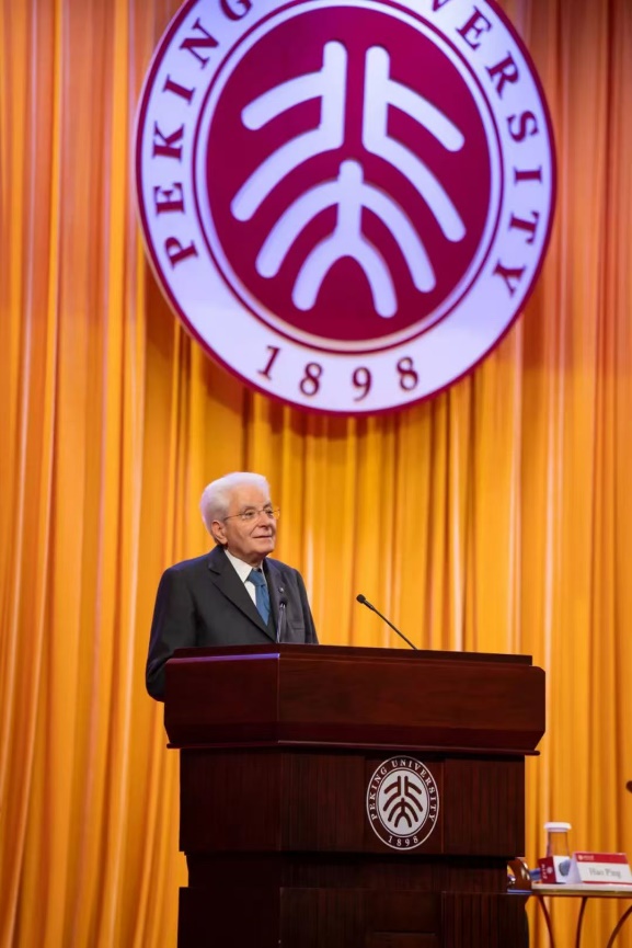 11月9日下午,在華訪問的意大利總統(tǒng)塞爾焦·馬塔雷拉(Sergio Mattarella)率代表團(tuán)訪問北京大學(xué),并在北京大學(xué)辦公樓禮堂發(fā)表主題演講