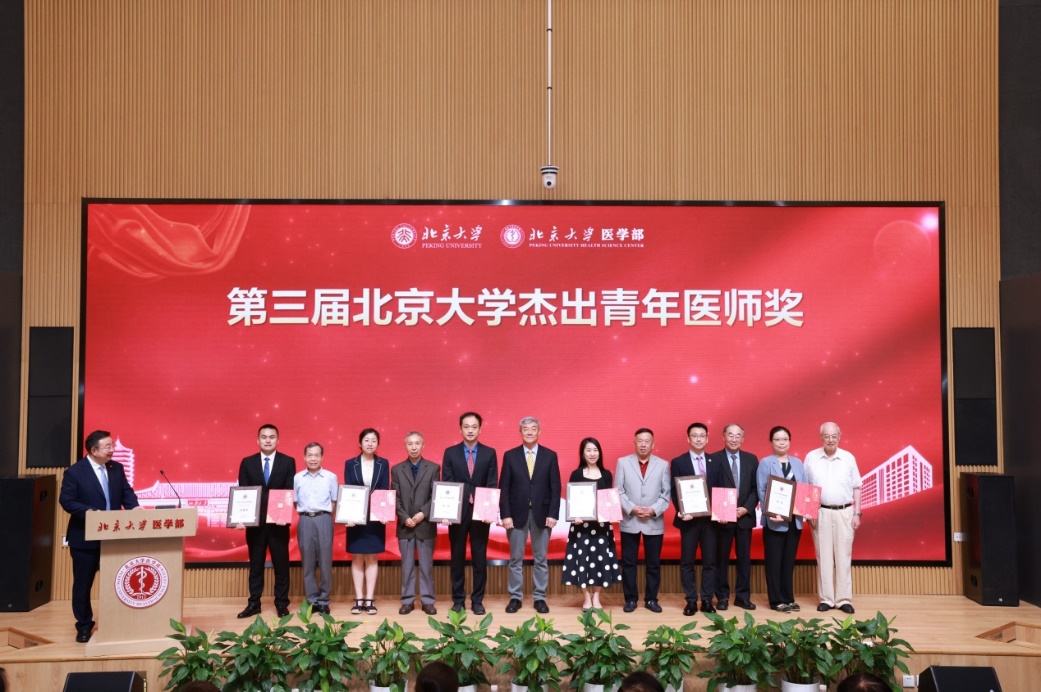 8月15日下午,“醫(yī)者仁心,大愛無疆”北京大學(xué)醫(yī)學(xué)部慶祝第七個(gè)“中國醫(yī)師節(jié)”暨第三屆北京大學(xué)優(yōu)秀青年醫(yī)師獎(jiǎng)?lì)C獎(jiǎng)大會(huì)在醫(yī)學(xué)部科技樓報(bào)告廳舉行,圖為領(lǐng)導(dǎo)嘉賓為杰出青年醫(yī)師獎(jiǎng)獲得者頒獎(jiǎng)