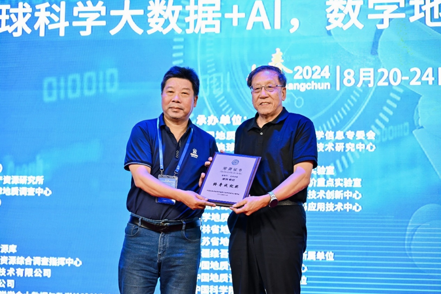 8月20至24日,第二十屆全國數(shù)學(xué)地質(zhì)與地學(xué)信息學(xué)術(shù)研討會(huì)在吉林長春舉行,潘懋教授(右)被授予“數(shù)學(xué)地質(zhì)與地學(xué)信息終身成就獎(jiǎng)”