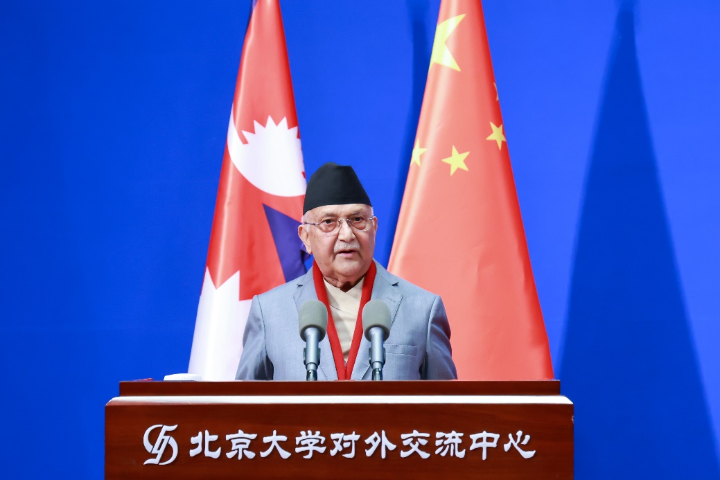12月4日上午,在華訪問的尼泊爾總理卡德加·普拉薩德·夏爾馬·奧利(Khadga Prasad Sharma Oli)訪問北京大學(xué)并作演講。