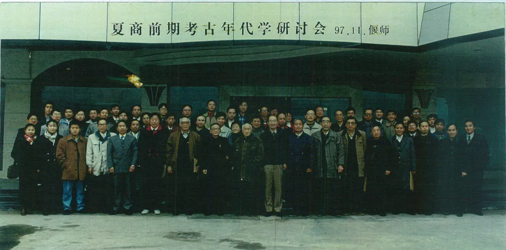 ▲1997年11月,李伯謙(前排左五)在偃師參加夏商周斷代工程“夏、商前期考古年代學(xué)研討會(huì)”