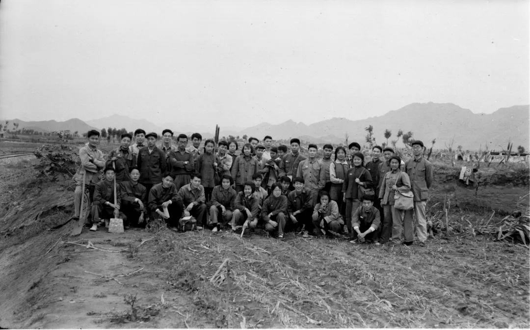 ▲1958級(jí)同學(xué)在昌平雪山工地合影。1961年9月至1962年1月,鄒衡、俞偉超、李伯謙帶領(lǐng)1958級(jí)本科生及留學(xué)生1人在昌平雪山遺址進(jìn)行生產(chǎn)實(shí)習(xí)