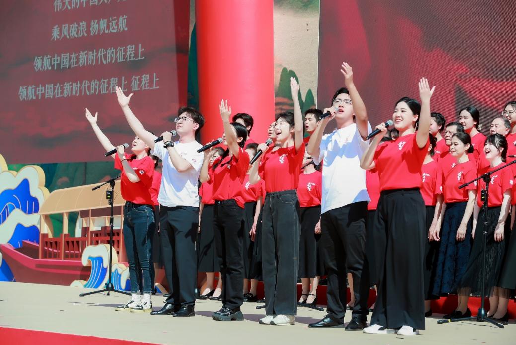 合唱《領(lǐng)航》用歌聲感謝領(lǐng)航者,齊誦《聆聽青年》是屬于當代奮楫者的堅定力量。