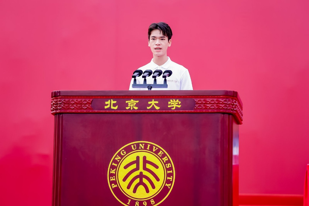 新生代表、工學院2025級本科生王派回顧了中學階段參與“智能助老”項目而對科學技術(shù)產(chǎn)生濃厚興趣的故事。他表示,將追求“既能打磨器之精微,也能成就道之廣大的人生”,不辜負時代與青春,為民族復興偉業(yè)匯入北大人的力量。