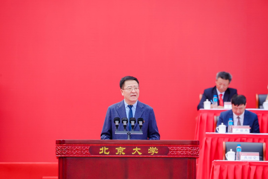 龔旗煌代表學校對各位新同學的到來表示熱烈歡迎。他指出,兩天前,紀念中國人民抗日戰(zhàn)爭暨世界反法西斯戰(zhàn)爭勝利80周年大會在北京隆重舉行,北大師生倍感振奮與自豪。從“救亡圖存”的艱辛探索,到“團結(jié)起來,振興中華”的時代強音,再到“請黨放心,強國有我”的使命擔當,走過127個春秋的北大始終與祖國和人民同奮斗、共前進,引領(lǐng)一代代青年學子在歷史潮流中堅定人生航向。